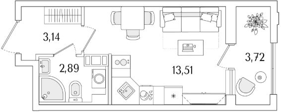Студия от 19,01 м²