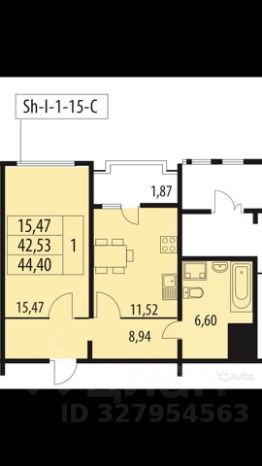 Планировка: Идеально продуманное пространство. Общая площадь — 44,4 м² (с лоджией) / 42,53 м² (без).
