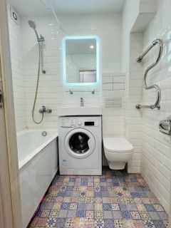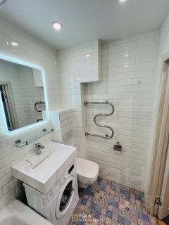 Санузел полностью отделан плиткой, всё аккуратно и в хорошем состоянии.