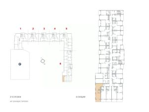 На первом этаже расположены магазины, маркетплейсы, кофейни и всё что необходимо для повседневной жизни.