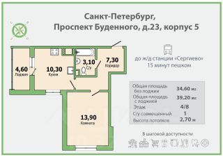 В пешей доступности вся социальная инфраструктура, гипермаркет Лента, Леруа Мерлен, остановка общественного транспорта, до ж/д станции Сергиево 15 минут пешком, 3 общеобразовательных школы, и 5 детских садов.