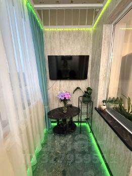 Лоджия полностью утеплена. Произведена замена окон на металлопластик фирмы REHAU 70мм, с двухкамерными, мультифункциональными ст/пакетами. Украшена элементами подсветки. Тёплый пол, керамогранит. Изготовлен по заказу раскладной диван. Получилась дополнительная мини комната для отдыха.
