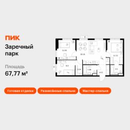 Продаётся 3-комн. квартира площадью 67,77 кв.м на 23 этаже 24 этажного дома (Корпус 4, Секция 6) проекта ПИК Заречный парк. Светлый просторный подъезд на уровне земли, функциональная планировка, большие окна, c отделкой.