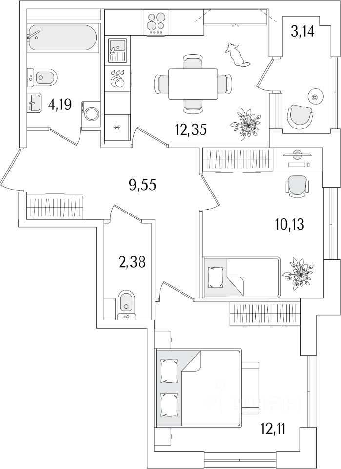3-комн. от 75,51 м²