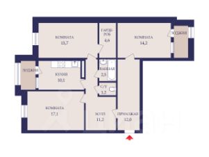 В просторных комнатах (17,1+15,7+14,2) м2 легко разместить мебель и технику.