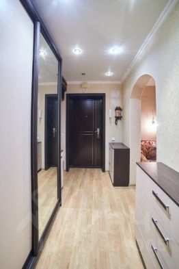 В квартире современный ремонт: в комнатах и коридоре на полу ламинат, обои светлых оттенков, санузел - в кафеле. Кухня 10,1 м2 с выходом на лоджию. На кухне остается встроенная мебель для хранения посуды и техника ( духовой шкаф и электрическая варочная поверхность, вытяжка). В прихожей остается шкаф-купе, комод и вешалка для хранения одежды.