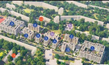 По всей территории комплекса ведется видеонаблюдение, установлены бесшумные лифты, также имеется колясочная и велосипедная. Красивый, зеленый двор без машин с игровыми , спортивными площадками и зонами отдыха для взрослых и детей. На территории расположены школа и детский сад. Рядом с комплексом расположено много магазинов, кафе, ресторанов.