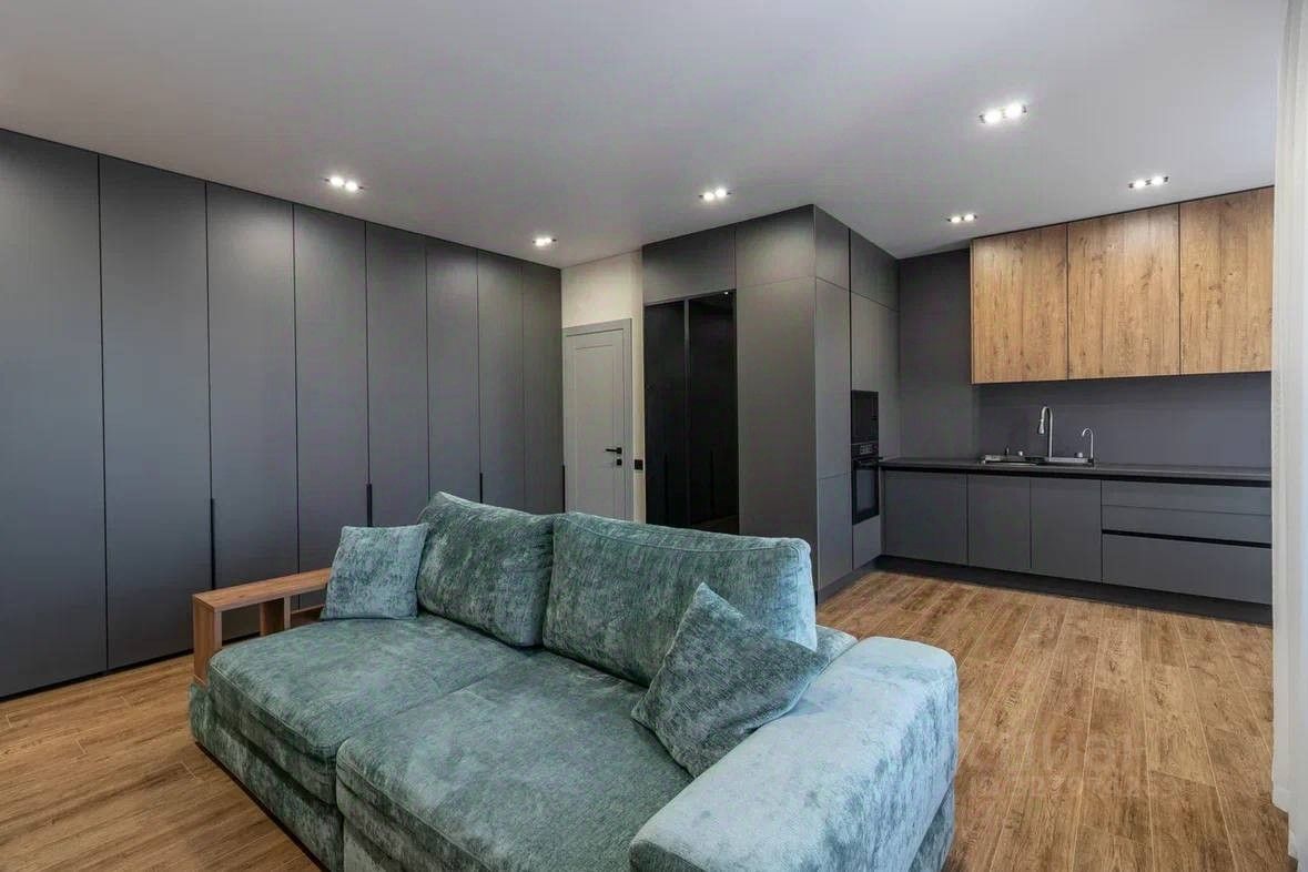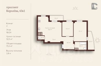 Просторная евро-трехкомнатная с кухней-гостиной 32.5 м² и двумя санузлами.