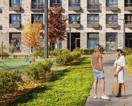 "Аэронавт" - камерный жилой квартал в который входит всего два дома. В его дворе будет закрытый парк с детскими площадками и местами для отдыха. На первом этаже откроются кафе, магазины и другие сервисы. Выйти во двор и на улицу можно из просторных и светлых парадных, где также будет отдельное помещение для колясок. В подземный паркинг можно будет спуститься на лифте с любого этажа.