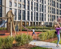 "Аэронавт" - камерный жилой квартал в который входит всего два дома. В его дворе будет закрытый парк с детскими площадками и местами для отдыха. На первом этаже откроются кафе, магазины и другие сервисы. Выйти во двор и на улицу можно из просторных и светлых парадных, где также будет отдельное помещение для колясок. В подземный паркинг можно будет спуститься на лифте с любого этажа.