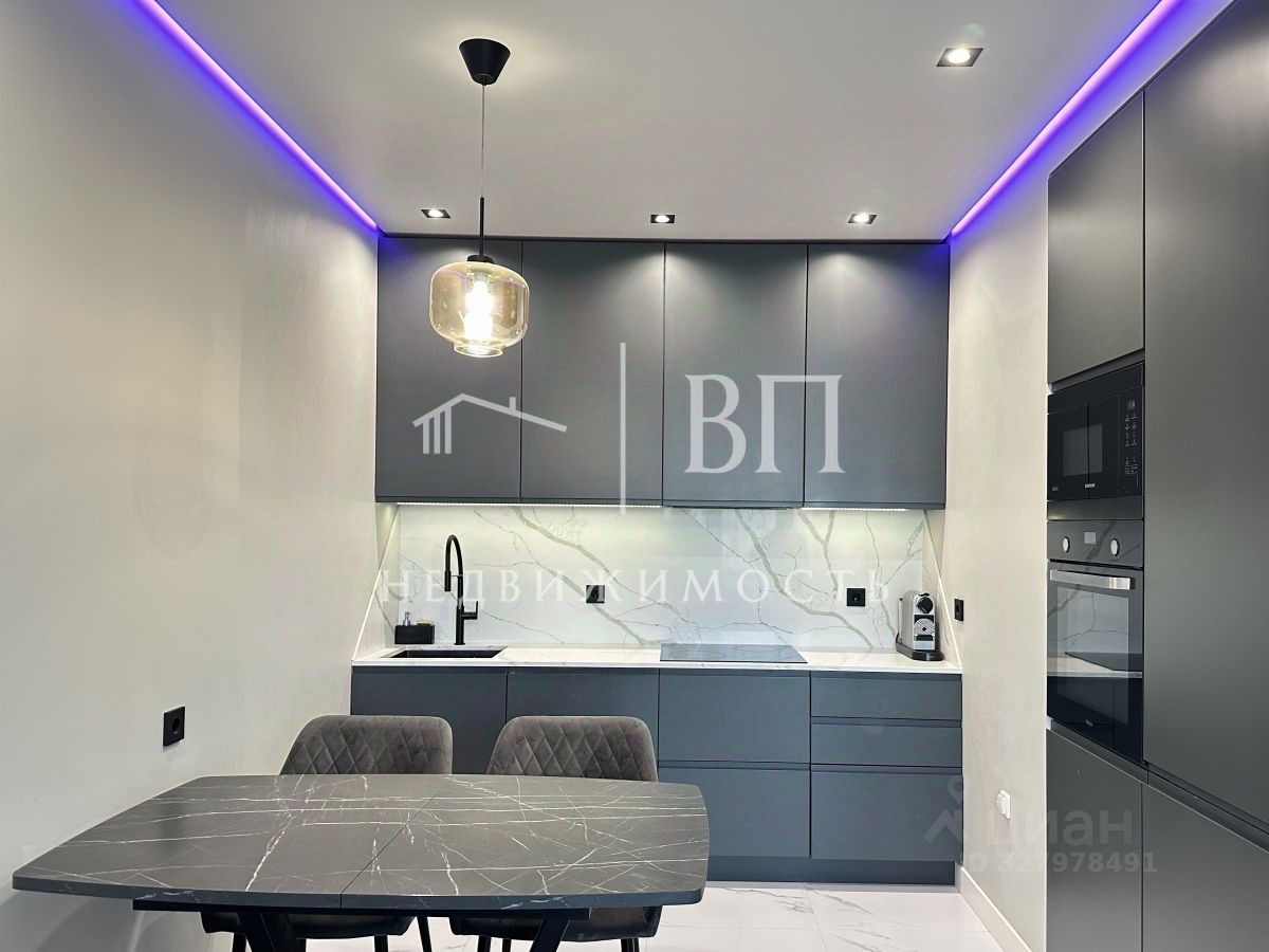 Кухня выполнена по индивидуальному проекту и оснащена всем необходимым (посудомоечная машина, холодильник, встроенный духовой шкаф и микроволновка) - все останется новому владельцу.