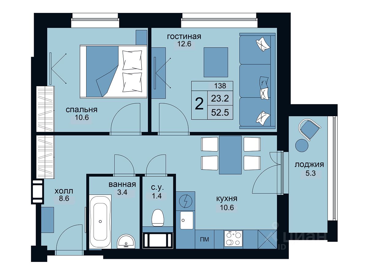 Продаются 2-комнатные апартаменты в сданном доме (Крыленко, 14с3 (Дом 16)), срок сдачи: IV-кв. 2023, общей площадью 52.5 кв.м., на 9 этаже. В стоимость входит полная чистовая отделка.
