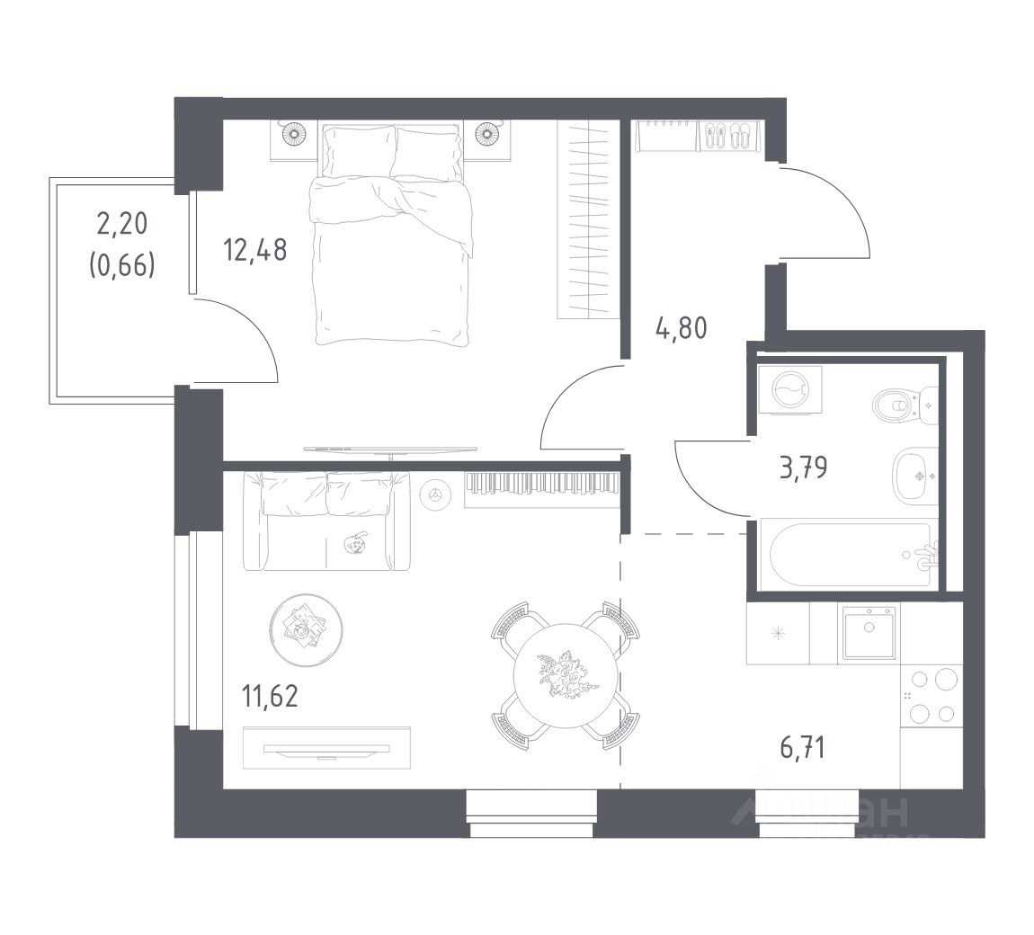 Жилая площадь24,1 м²