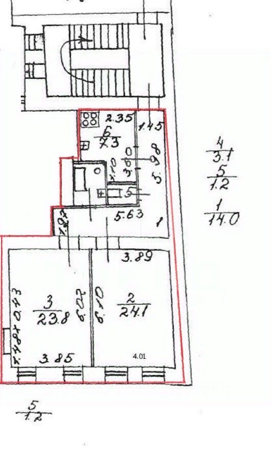 Квартира расположена на 4 этаже пятиэтажного кирпичного дома, построенного в 1798 году. Высота потолков 3,1 метра создаёт ощущение простора и свободы. Общая площадь квартиры — 73,9 кв. м, жилая — 47,9 кв. м, площадь кухни — 7,3 кв. м. Комнаты изолированы, их площадь составляет 23,8 кв. м и 24,1 кв. м соответственно. Окна выходят на улицу.