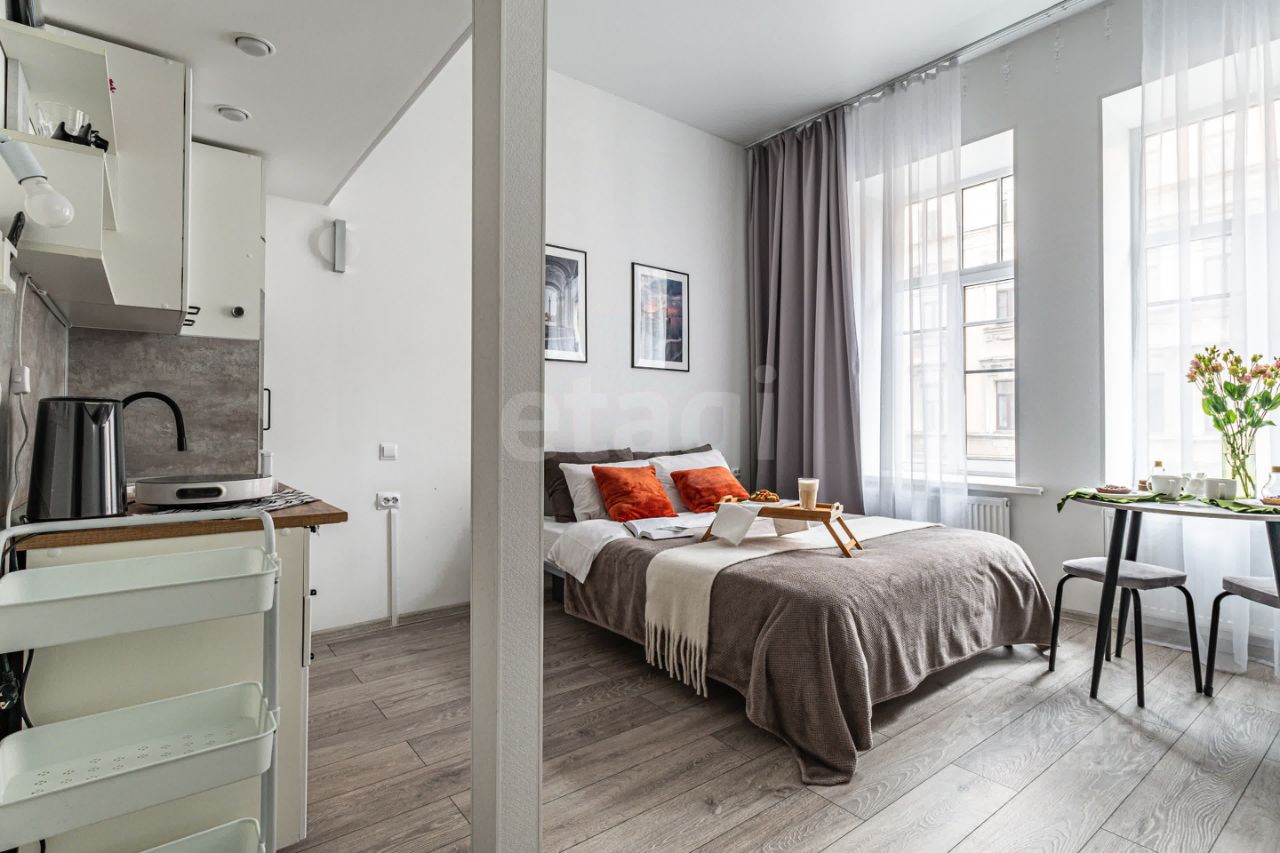 Продаётся светлая дизайнерская студия в Центральном районе. Дом 1910 года с капитальным ремонтом. Рядом с Невским проспектом.