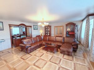 Интересная планировка: квартира двухсторонняя, с интерестным зонированием пространства. Большая светлая гостинная 40 метров с натяжным потолком и паркетом сразу привлекает внимание. Отличная возможность для больших семейных и дружеских встреч.