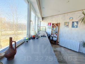 Гостиная: очень большая — 40 м², с двумя окнами и выходом на маленькую лоджию 2.9 кв. м. , вид на улицу. Кухня 13 кв. м. с встроенной мебелью и техникой, вид на улицу.