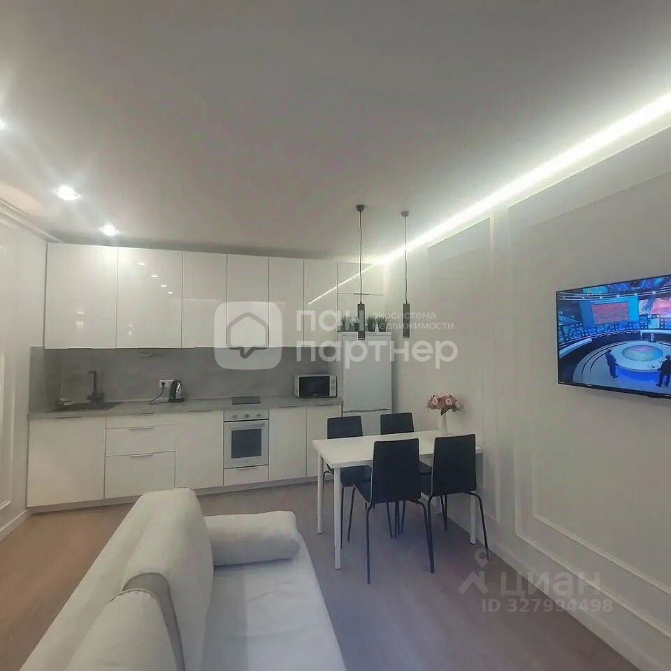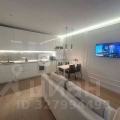Роскошная просторная кухня-гостиная 20 кв.м, совмещенный санузел в современном стиле с качественной сантехникой, полностью укомплектованная бытовой техникой (холодильник, посудомоечная машина). В квартире есть гардеробная для хранения. Всё мебель и техника новые — никто не жил после ремонта!