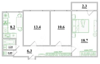 - В коридоре и спальне установлены шкафы Hoff, при желании их можно дополнить модулями того же бренда. Шкафы совместимы с системой Ikea Комплемент новые комплектующие свободно продаются на маркетплейсах и Авито.