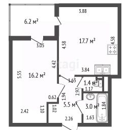 -Вместительная кухня-гостиная 17,7 кв м
