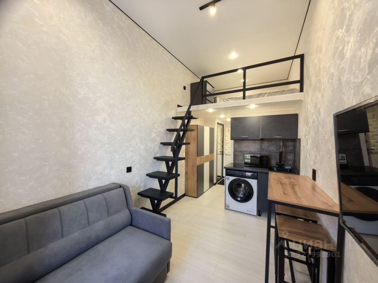 Произведён дизайнерский ремонт с заменой всех систем коммуникаций: канализации, электропроводки и сантехники. Студия укомплектована всем необходимым для жилья: кухонный гарнитур со встроенной техникой: прямая вытяжка, встроенная электрическая панель, фильтры для воды; имеется холодильник, стиральная машина, микроволновая печь, бойлер, кондиционер и мебель. В санузле прямая канализация