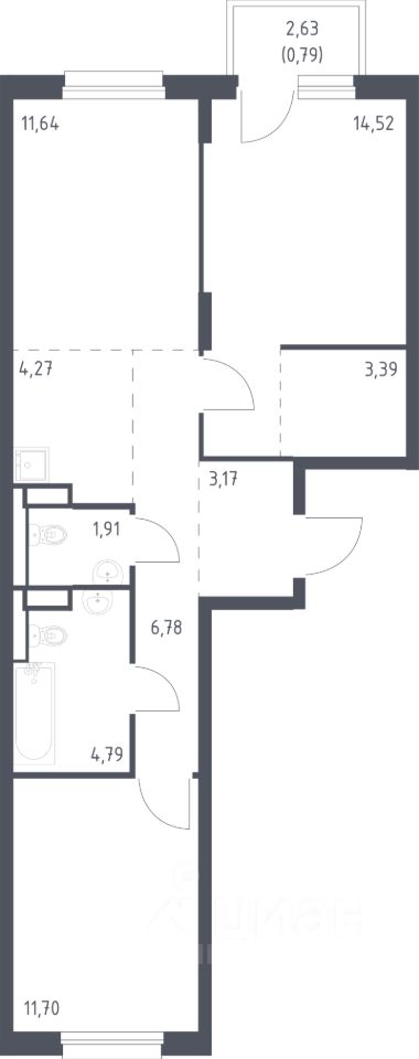 Продаётся 2-комнатная квартира в строящемся доме (Корпус 1.3), срок сдачи: IV-кв. 2026, общей площадью 62.96 кв.м., на 6 этаже. Уютный жилой комплекс во Всеволожском районе Ленинградской области.