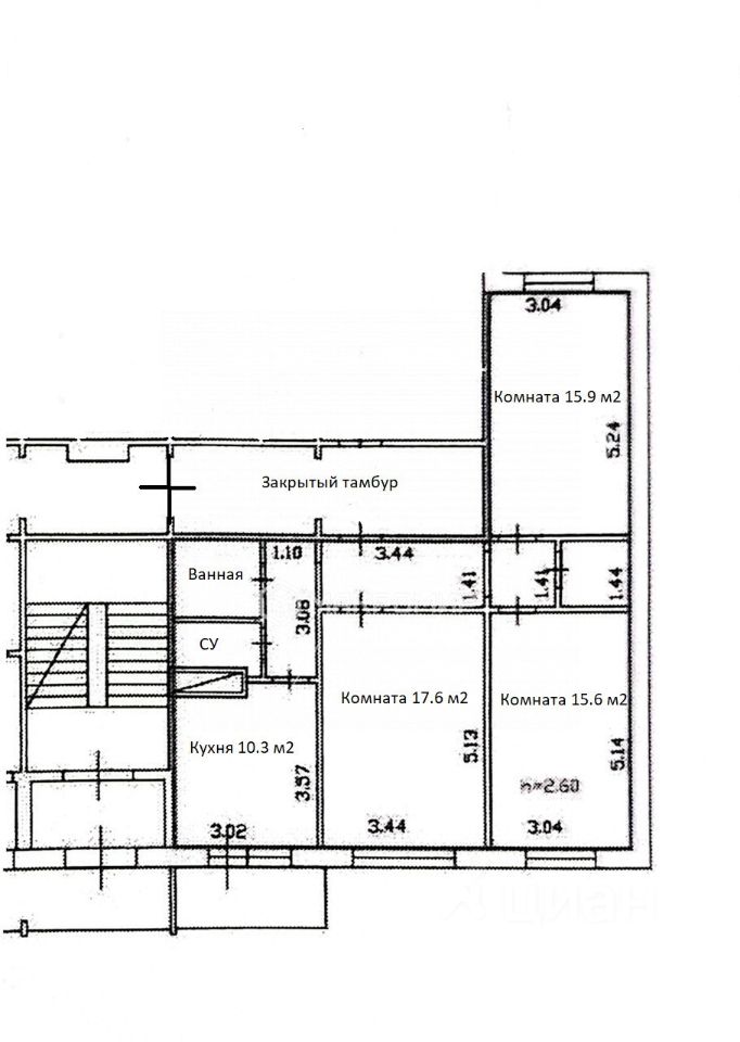 Квартира двусторонняя, очень теплая. Все изолированные комнаты (17.6+15.6+15.9), кухня 10.3 кв. м. с выходом на застекленный балкон 1.3 кв.м., СУ раздельный, кладовка.