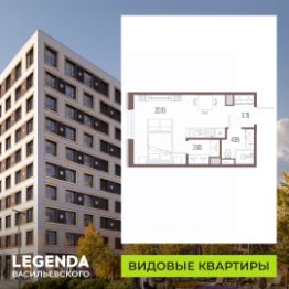 1-комн. квартира-студия с предчистовой отделкой в ЖК "ЛЕГЕНДА Васильевского" на 3 этаже. Общая площадь: 30.08 кв.м. Высота потолков 2.72 м.