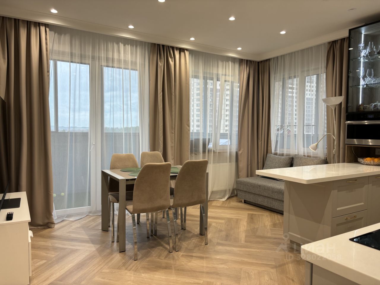 Квартира на 7 этаже (над квартирой технический этаж, никто не ходит). Большая кухня гостиная 20 метров. В кухне 3 окна.