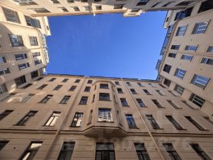 Квартира двухкомнатная, общей площадью 55,4кв.м., находится на шестом этаже дома 1914 года постройки, стоящего непосредственно на набережной канала Грибоедова.