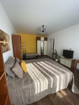 Удобная,тихая, комфортная 1 к.кв. с косметическим ремонтом: общ.S 39м.кв.; квадратная кухня 10,6 м.кв., комната 20,2 м.кв. с выходом на большой 6 м. балкон. Тамбур на 5 квартир, спокойные соседи. Чистая парадная, новые лифты. Крепкий кооперативный дом 137 серии.