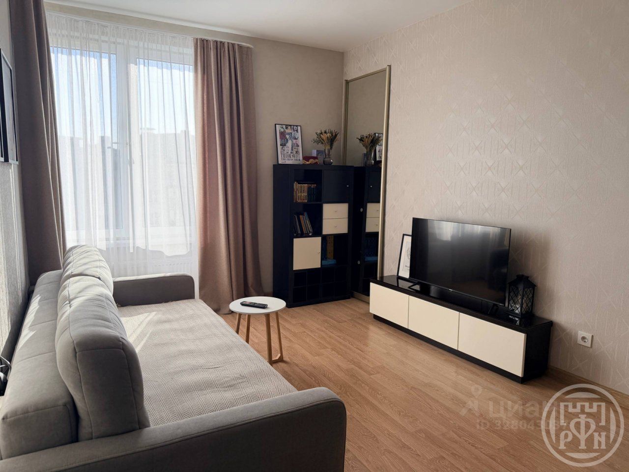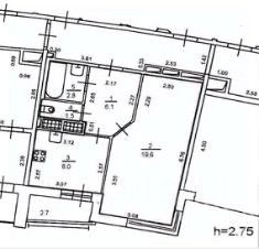 Общая площадь квартиры 38 м2. Светлая просторная комната с угловым окном площадью 19,6 м2. Кухня 8м2 с выходом на застекленную лоджию 2,7 м2. На кухне установлена встроенная кухонная мебель с бытовой техникой. Высота потолков в квартире составляет 2,75м. Состояние квартиры отличное.