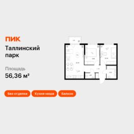 Продаётся 2-комн. квартира площадью 56,36 кв.м на 4 этаже 12 этажного дома (Корпус 4.2, Секция 1) проекта ПИК Таллинский парк. Светлый просторный подъезд на уровне земли, функциональная планировка, большие окна, без отделки.