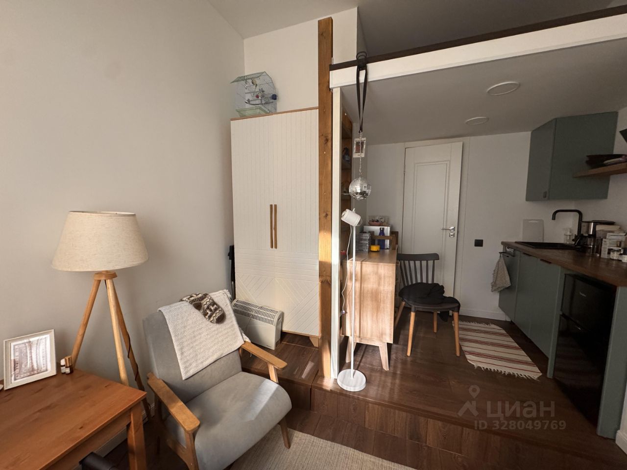 Общая площадь студии 17м.
