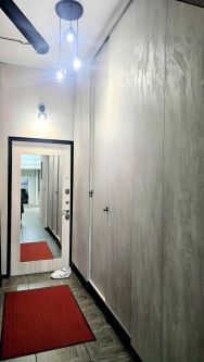При ремонте была полностью заменены: проводка, трубы, радиаторы, окна, полностью переделаны полы (керамогранит), установлены натяжные потолки, установлено дополнительное освещение в каждом помещении, а так же сделано акцентное освещение.
