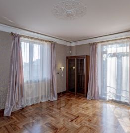 Изысканная отделка: паркет из натурального палисандра, лепнина ручной работы, мраморные подоконники, бельгийские текстильные обои, финские дерево-алюминиевые окна, кафельная плитка производтва Италии и Испании, трубчатые радиаторы отопления Zender, богатая фурнитура.