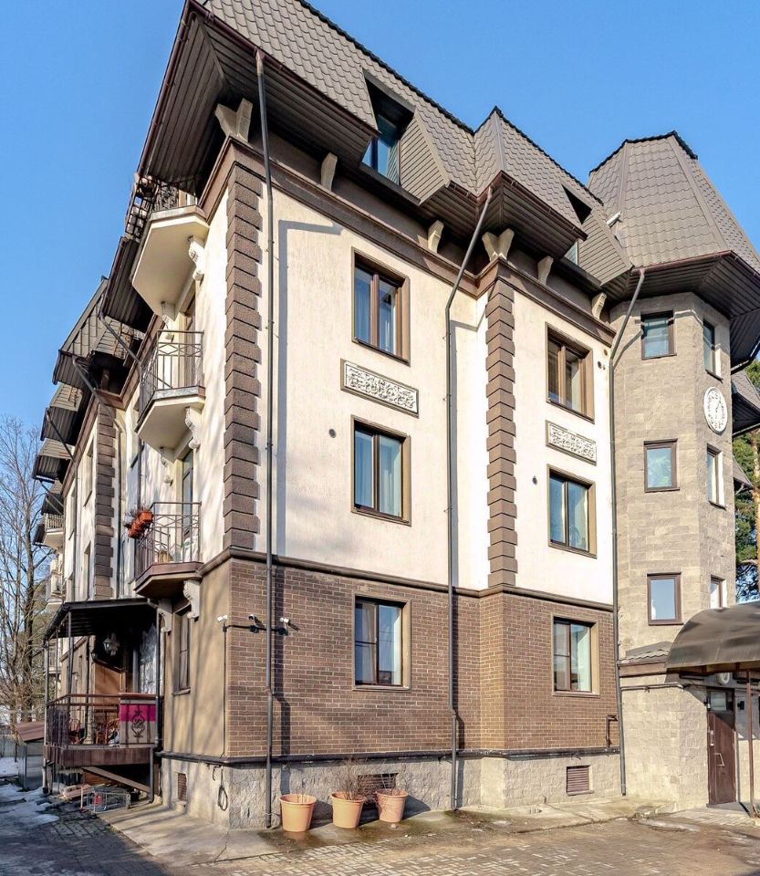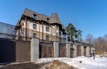 Дом окружают сосны, озера, частные усадьбы, прогулочные зоны.