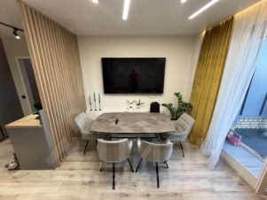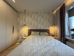 Ремонт был выполнен два года назад с вниманием к деталям и качеству. Вся мебель встроенная, интерьер выглядит гармонично и современно, без лишней перегруженности. Квартира полностью готова к проживанию — можно заезжать сразу, без дополнительных вложений.