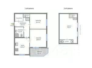 1 уровень: прихожая с гардеробной, две отдельные комнаты, просторная кухня, застекленная лоджия, большой совмещенный сан.узел.