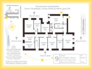 Квартира на шестом этаже с окнами на три стороны — редчайшее сочетание для старого фонда. 14 окон и высокие потолки наполняют пространство светом с утра до вечера. Виды уникальны: с одной стороны — достопримечательности города, с другой — легендарные петербургские крыши, которые когда-то вдохновляли писателя.199 метров творческой свободы