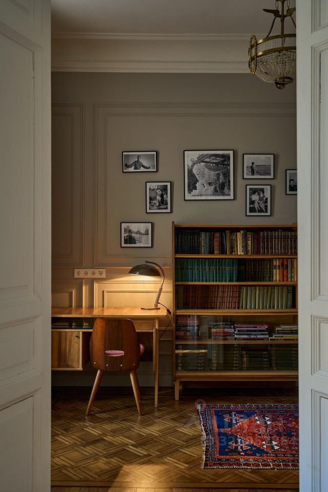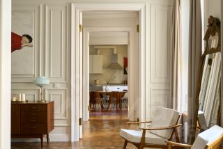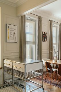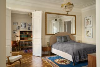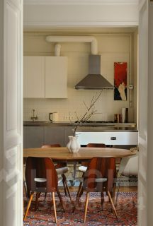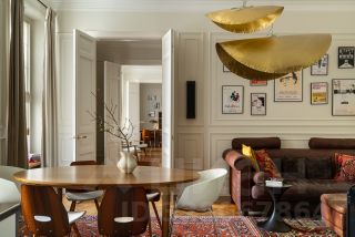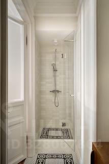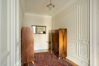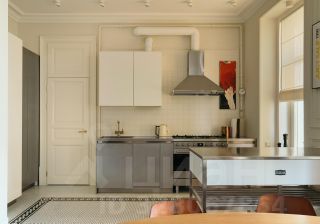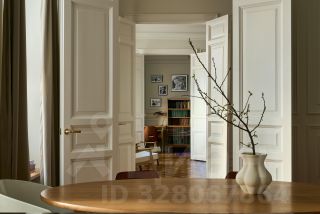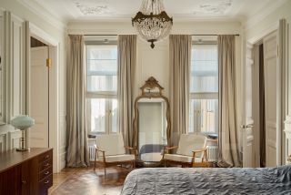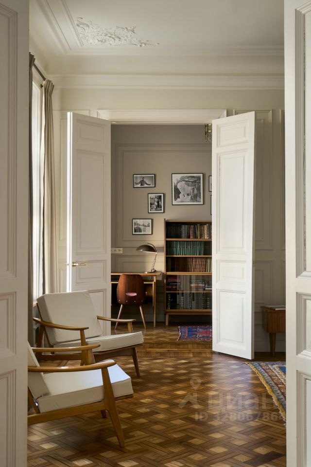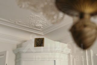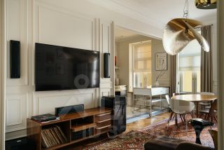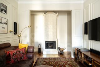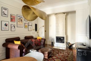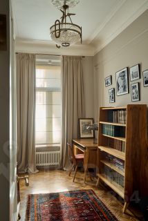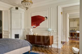 В квартире раскрыта анфилада, объединяющая все пространство: кабинет и мастер - спальня, гардеробная и кухня-гостиная. Бережно восстановлен лепной декор на потолке. Двери и наборный дубовый паркет приведены в первозданный вид.