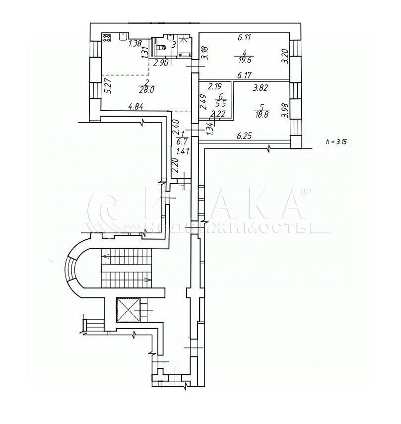 высота потолков - 3,15 метров