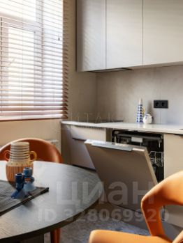 Квартира общей площадью 82 кв.м встретит вас большой 28-метровой кухней-гостиной с двумя окнами. Встроенная кухня укомплектована техникой, варочная панель - электрическая, установлен измельчитель. В шкафу, изготовленном на заказ, спрятаны стиральная и сушильная машины, а также электрический бойлер. В зоне кухни - теплый пол.