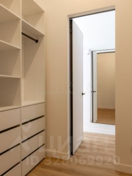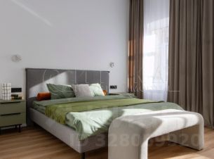 В спальной - 18,8 кв.м - построена вместительная гардеробная (5,5 кв.м) со шкафами, есть 2-спальная кровать и прикроватные тумбочки, осталось внести свои личные штрихи для завершения образа.