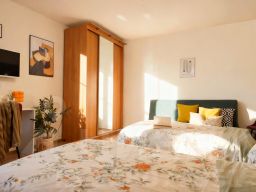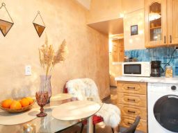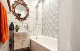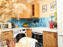 Стены: обои (комнаты), декоративная штукатурка и краска (кухня, прихожая), плитка (ванна), ПВХ-панели (туалет).