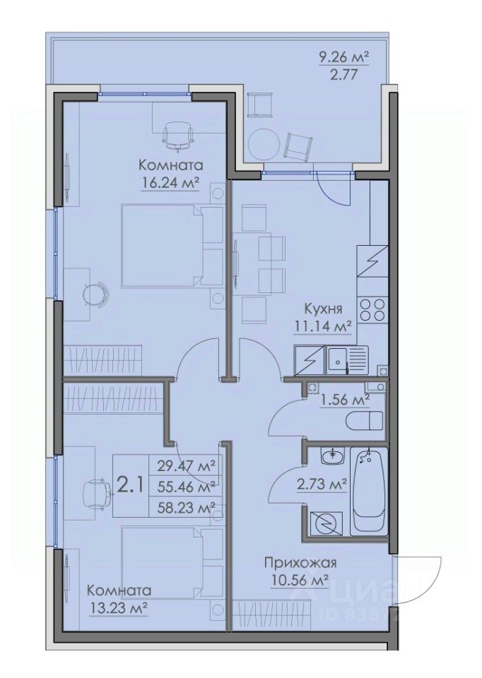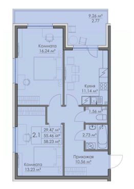 Общая площадь58,23 м²