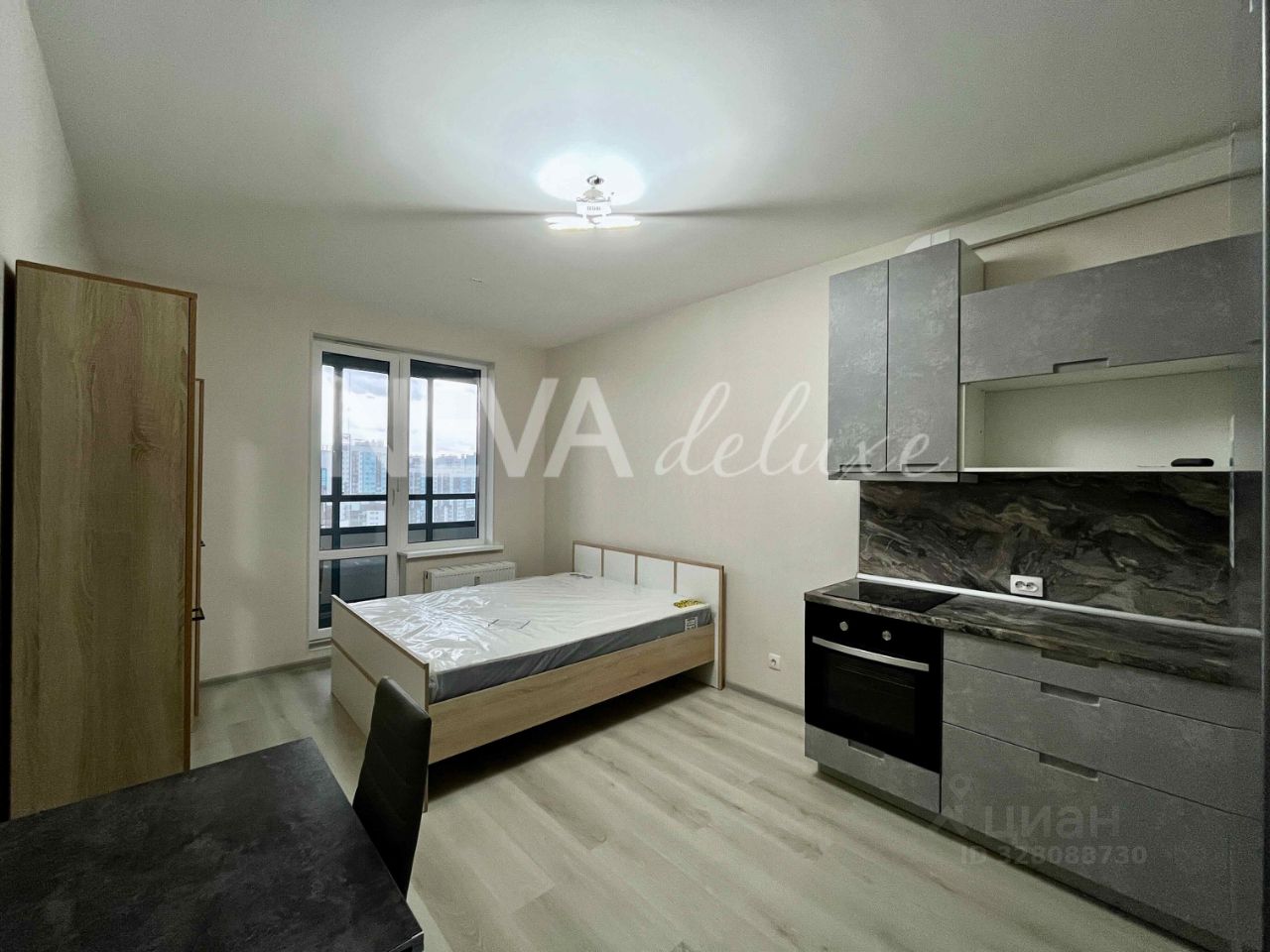 В квартире выполнен евроремонт. По планировке: просторная комната, совмещенный сан/узел, большая застекленная лоджия. Квартира продается со всей необходимой для комфортного проживания мебелью и техникой.