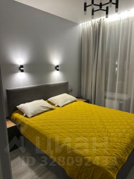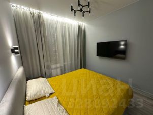 В спальне -двуспальная кровать,с подьемным механизмом,ТВ, большой вместительный шкаф с зеркальными фасадами ,за счет чего комната выглядит просторнее и уютнее.