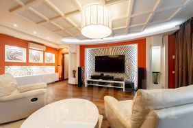 В квартире выполнен профессиональный высококачественный ремонт по дизайнерскому проекту, максимально раскрывающий все преимущества планировки и позволяющий наиболее рационально использовать каждый квадратный метр. В ремонте использованы премиальные материалы, устроена дополнительная шумоизоляция. Квартира укомплектована мебелью и бытовой техникой от ведущих производителей. Панорамные окна в квартире обеспечивают потрясающий вид на город.