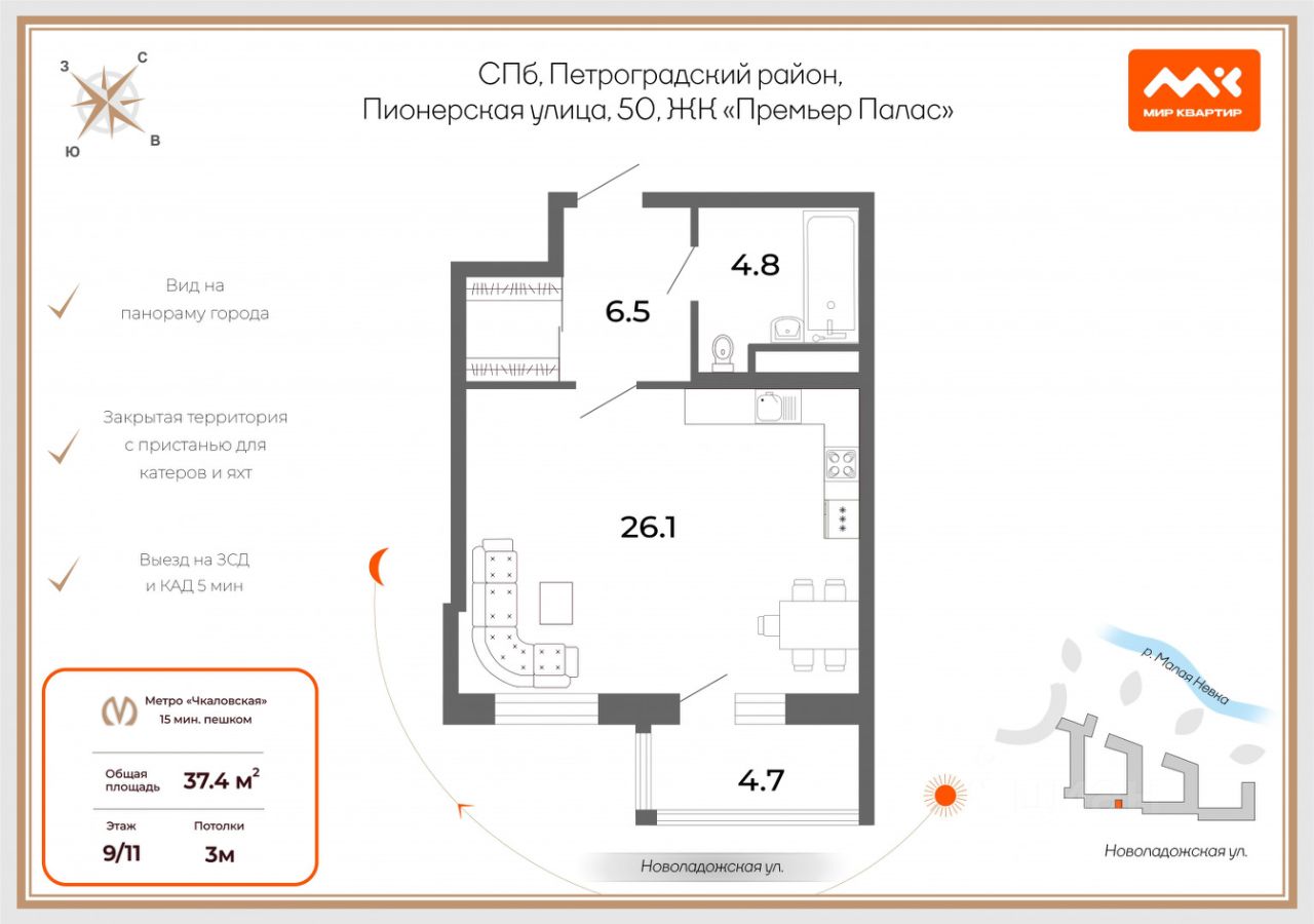 Арт. 133148334 ЖК бизнес-класса "Премьер Палас" в престижной части Петроградской стороны, на берегу реки Малой Невки.